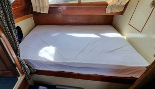 There is accommodation for four in complete comfort. In the aft cabin, there is a generous-sized double berth, a hand basin, drawers and ample storage space. The second double is in the very spacious forward saloon, there is a U-shaped dinette area with new upholstery, this converts down into a double berth with excellent leg room when the helm seat is lifted. In this cabin, the woodwork is pristine and there is a full sliding roof.